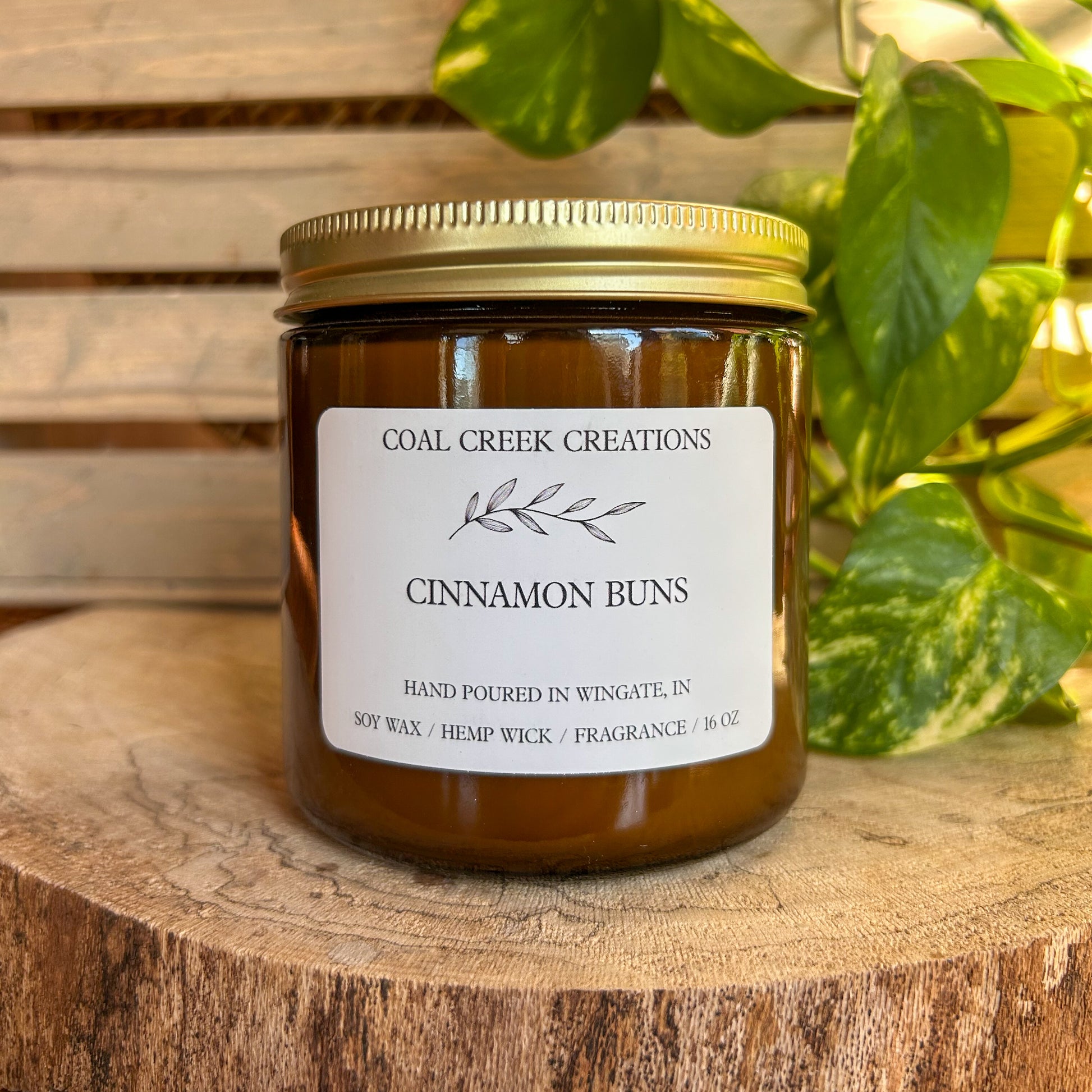 Cinnamon Buns | Scented Natural Soy Candle | Hand poured in Amber Jars with Organic Hemp Wick | Phthalate-free