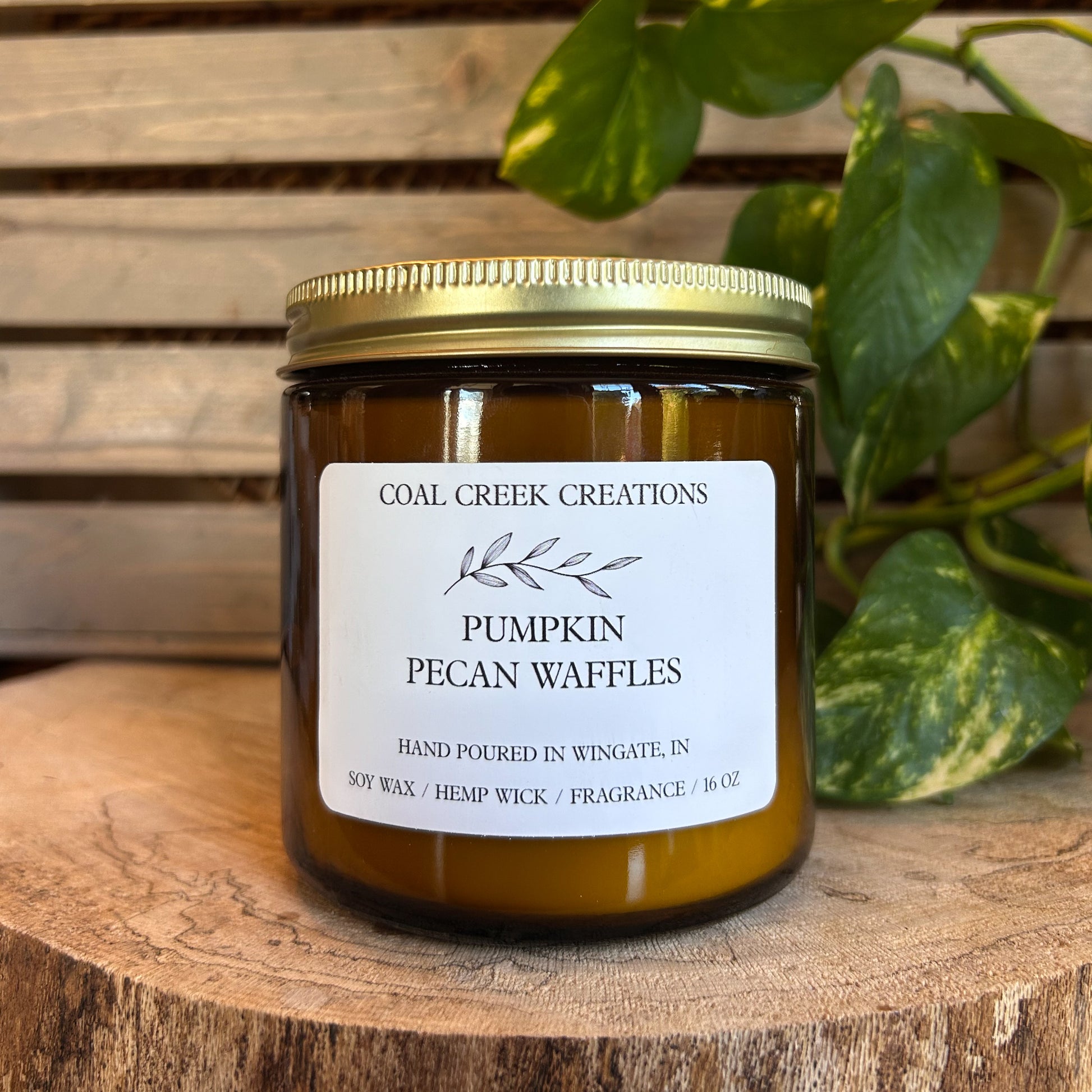 Pumpkin Pecan Waffles | Scented Natural Soy Candle | Hand poured in Amber Jars with Organic Hemp Wick | Phthalate-free | Fall Scented
